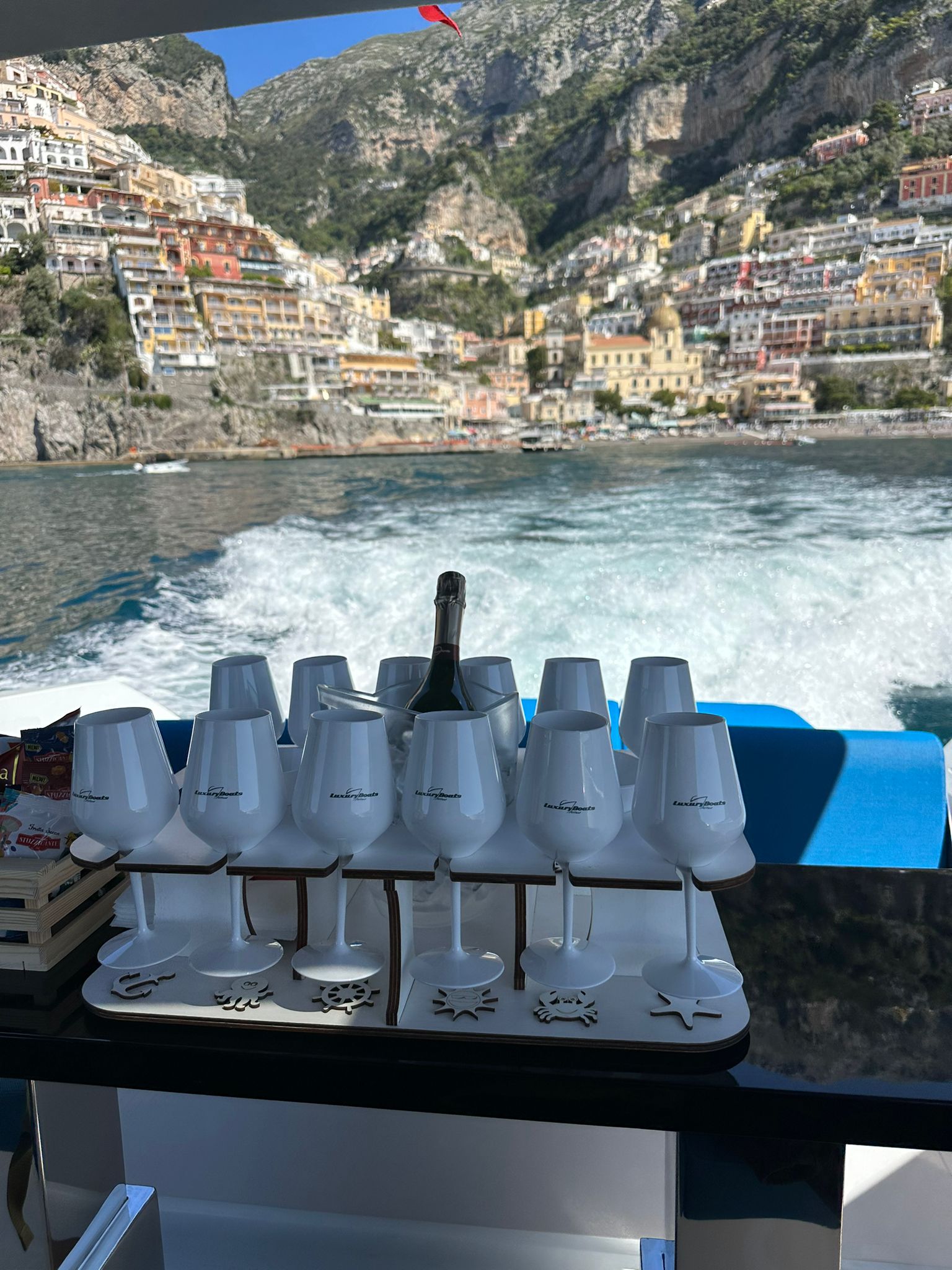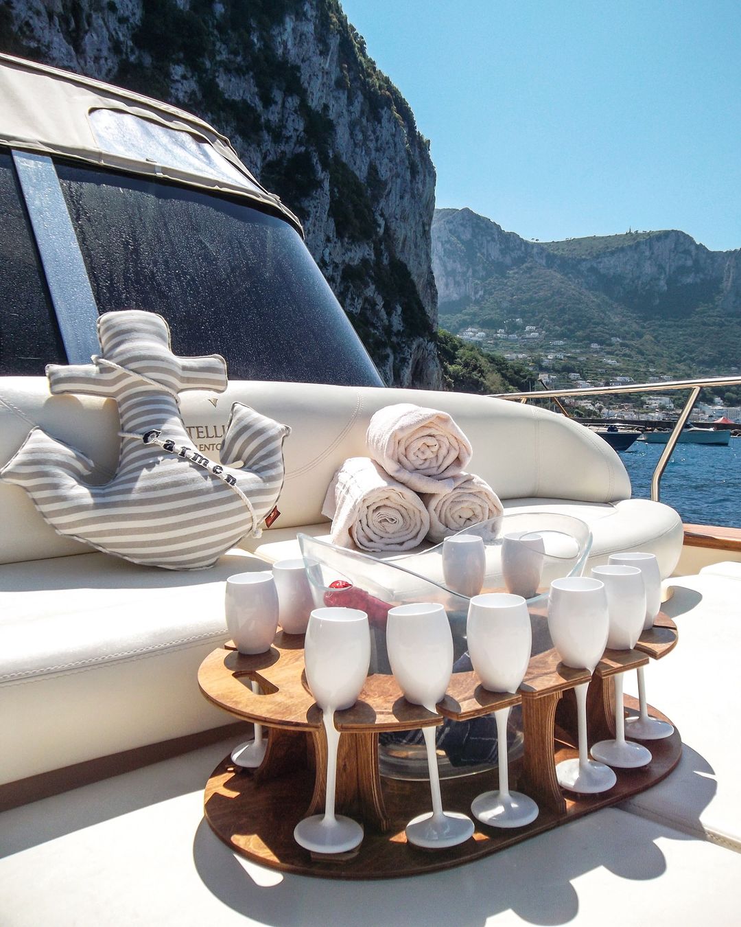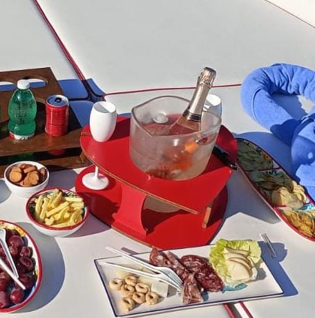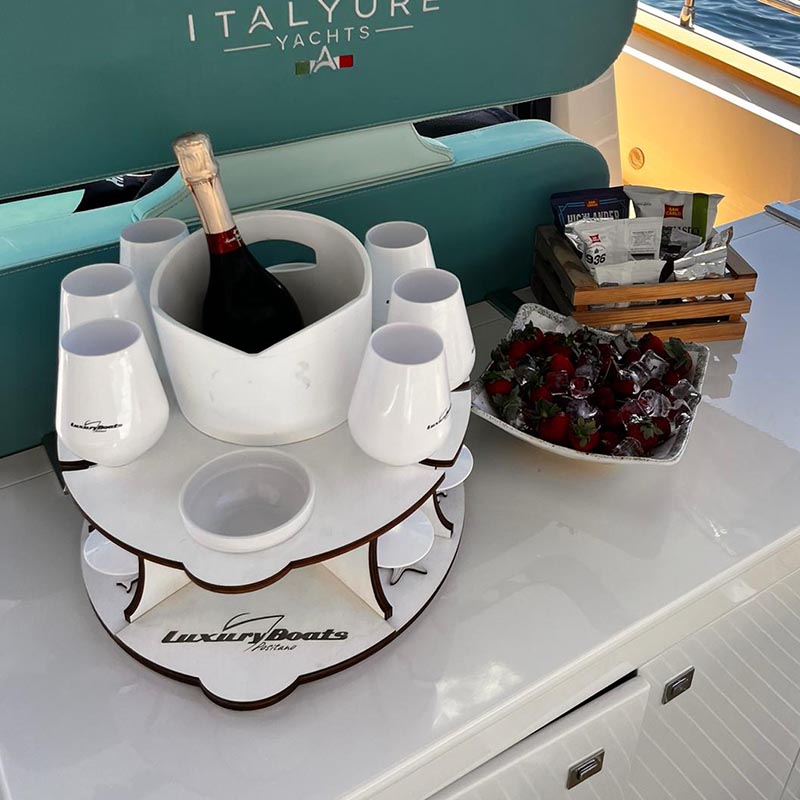Realizzato a mano con legno di alta qualità trattato per resistere all’umidità e alle condizioni marine, è progettato per mantenere calici e bottiglie sempre in perfetto equilibrio anche durante la navigazione.