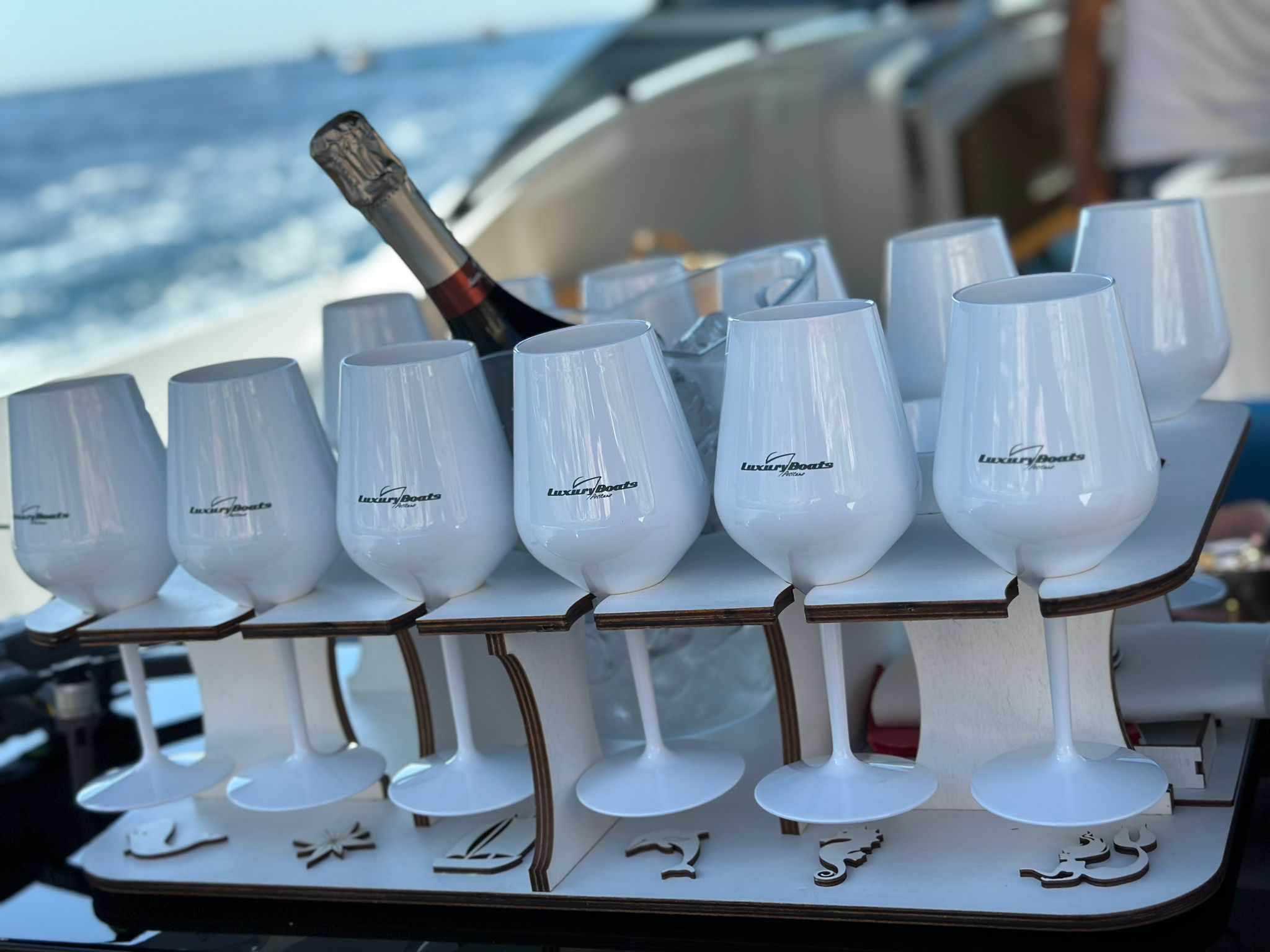 Il porta flute da barca in legno Slowood è l’accessorio ideale per vivere momenti di relax e convivialità in mare con classe e funzionalità.