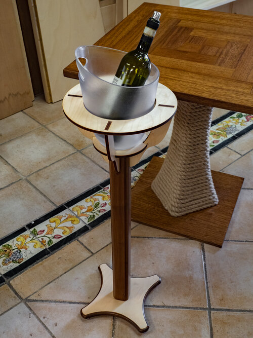 Il portasecchiello da aggancio in legno Slowood è la soluzione ideale per chi cerca un supporto elegante e stabile per tenere in fresco bottiglie di vino o champagne senza occupare spazio sul tavolo.